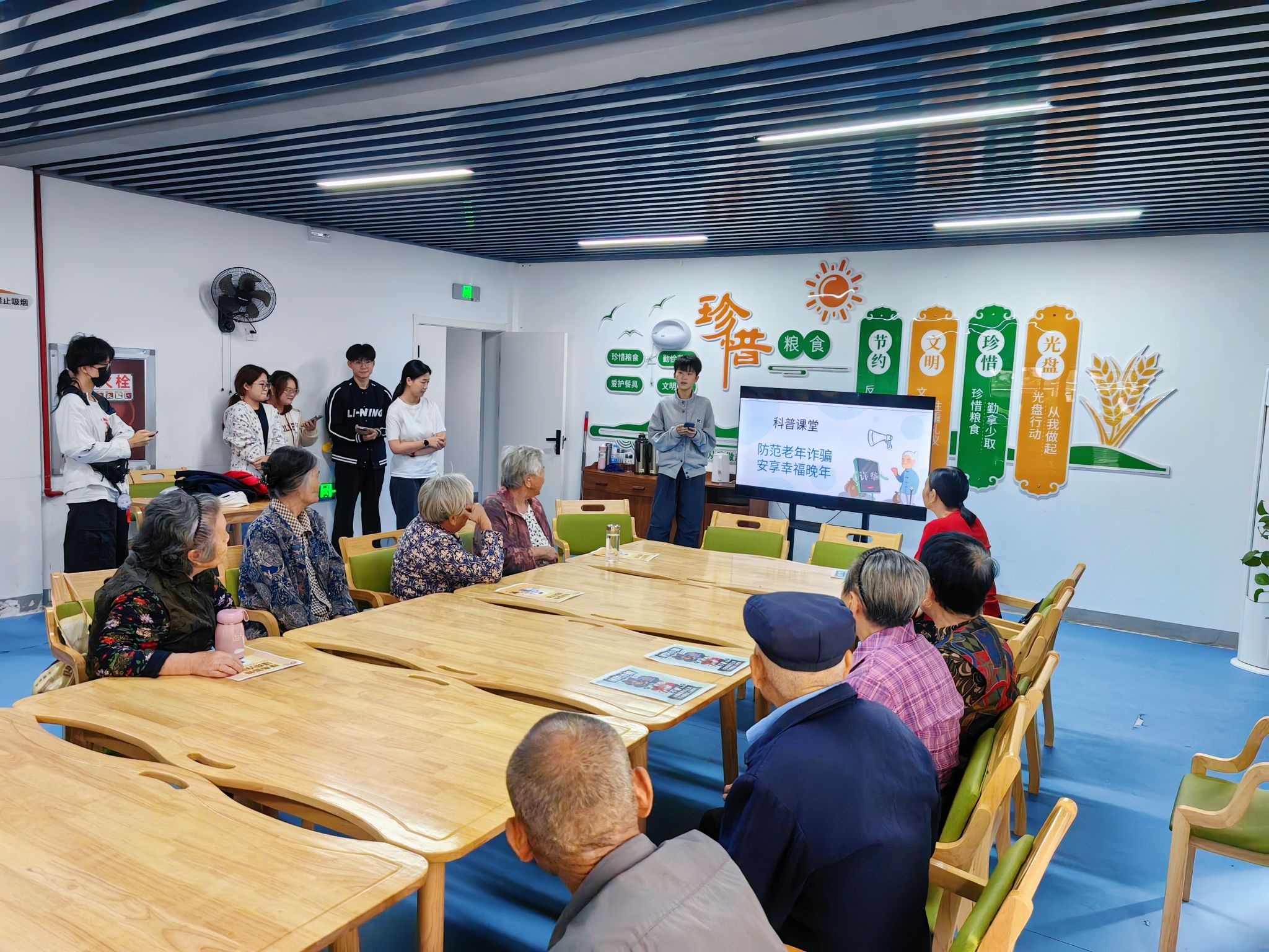 9月20日上午,法医学院寻迹志愿服务队走进芜湖市经开区龙山街道红星社区养老服务站,开展了一场面向服务站老年人反诈教育活动。