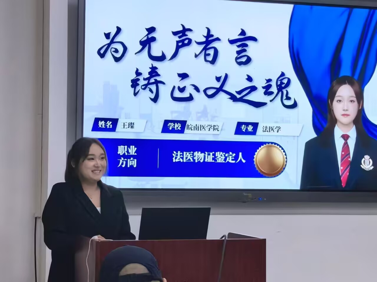 比赛分为 “就业赛道” 和 “成长赛道” 两个部分。在现场展示环节,选手们结合精心准备的PPT,从自我认知、职业环境分析、职业目标定位、评估调整等多个方面,清晰而生动地阐述了自己的职业梦想和实施路径。他们的目标领域多元,涵盖了公安法医、高校法医学教师、物证鉴定人、法医科普作家等职业,充分展现了我院学子视野开阔、志向远大的精神风貌。