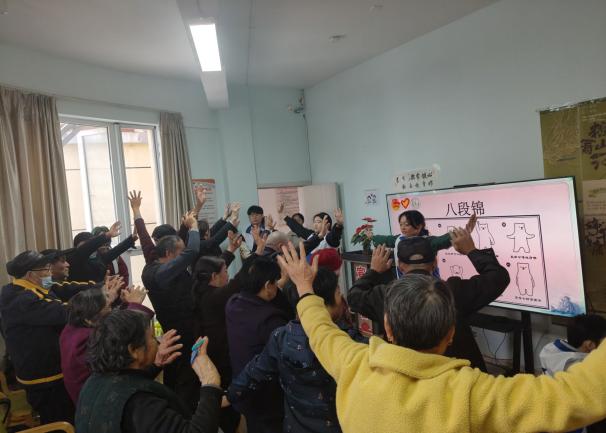 为增强互动、提升宣传效果,志愿者们还带领老人一起练习八段锦,通过舒缓的动作帮助大家活动筋骨、调理气血,生动展示了传统养生方式的实用价值。